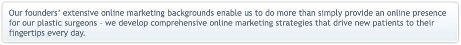 Take advantage of our founders’ 30+ years of online marketing experience. Let us do what we do best - drive new patients to you. Then you can focus on doing what you do best - performing life changing surgical procedures.